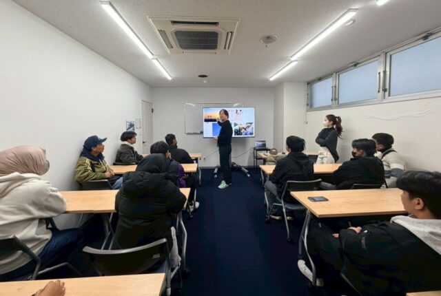 熱田神宮へ行く前に、まずPACIFIC企業創造協同組合の会議室に集合し、パワーポイントを使って日本の初詣文化と熱田神宮参拝のマナー等について学びました。