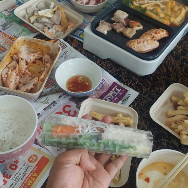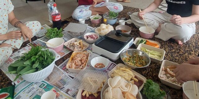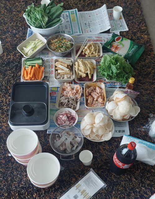 食事会では、生春巻き、焼肉、しゃぶしゃぶなど、いろいろな料理を囲んで盛り上がりました。
